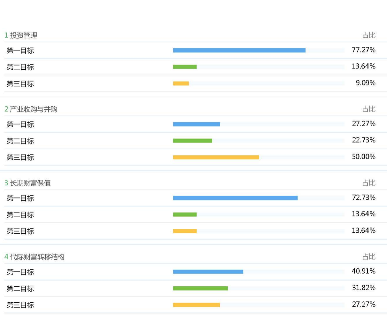 如前所述,當(dāng)前執(zhí)掌家族財(cái)富的這代人,平均年齡為55歲;這意味著家族財(cái)富正處于代際傳承的關(guān)鍵階段,財(cái)富如何代際傳承,如何設(shè)定結(jié)構(gòu)也就成為了第一目標(biāo)。家族財(cái)富擁有者的需求總體上越來越多元化,但核心是希望保持財(cái)富的穩(wěn)健增長(zhǎng)并且能夠和諧有序的傳承。需要從外部尋求更多支持,來解決財(cái)富傳承、資產(chǎn)配置的頂層設(shè)計(jì)與規(guī)劃執(zhí)行問題,幫助篩選不同類別的投資策略工具、不同風(fēng)格類型的管理人。