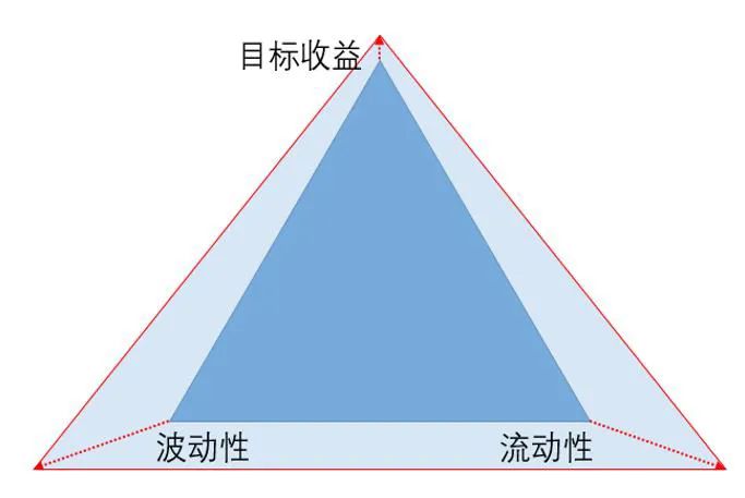 總體來(lái)說(shuō),一項(xiàng)投資的預(yù)期目標(biāo)收益越高,它對(duì)波動(dòng)和流動(dòng)性的約束越大,即必須犧牲部分流動(dòng)性需求、承擔(dān)更高的波動(dòng)水平。制定適當(dāng)?shù)念A(yù)期收益目標(biāo),選擇均衡的策略和組合,可以在收益性、安全性、流動(dòng)性之間獲得一個(gè)相對(duì)的平衡。